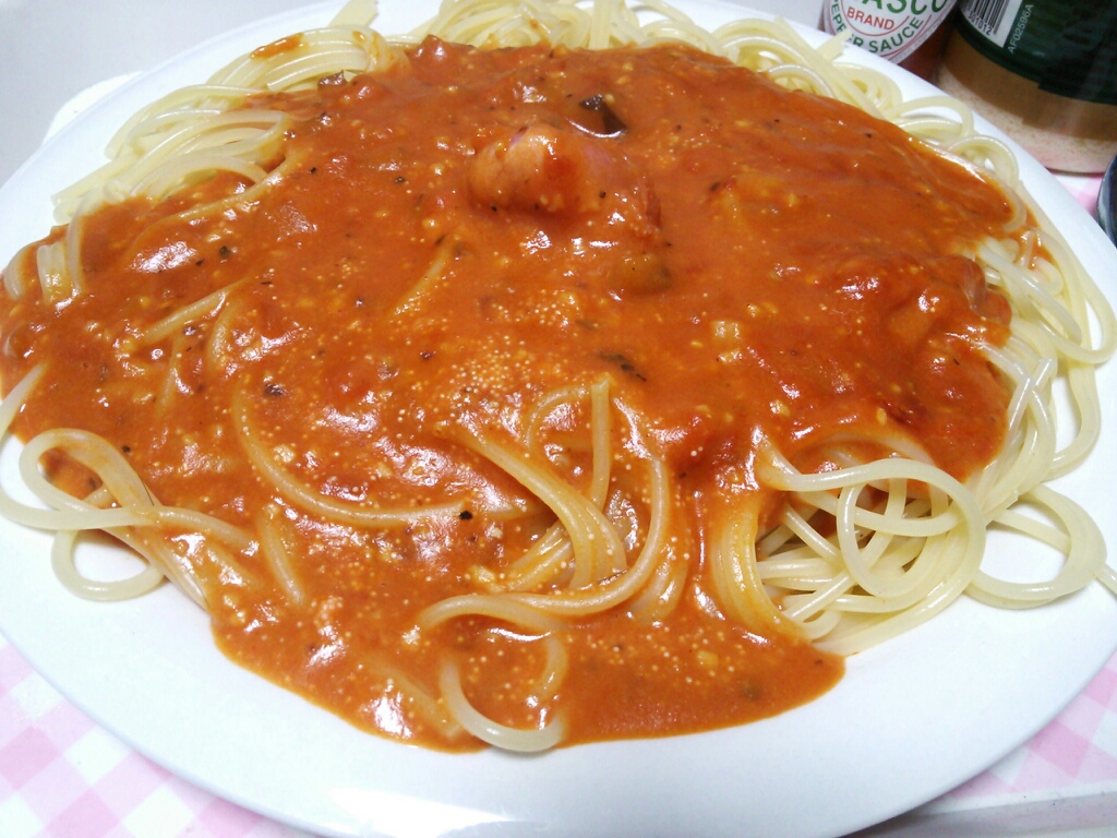 レトルトのトマトソースの味付けにアレンジを加えて、チーズと明太子をプラスしました!