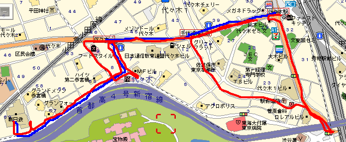 新宿から山手線で代々木まで。