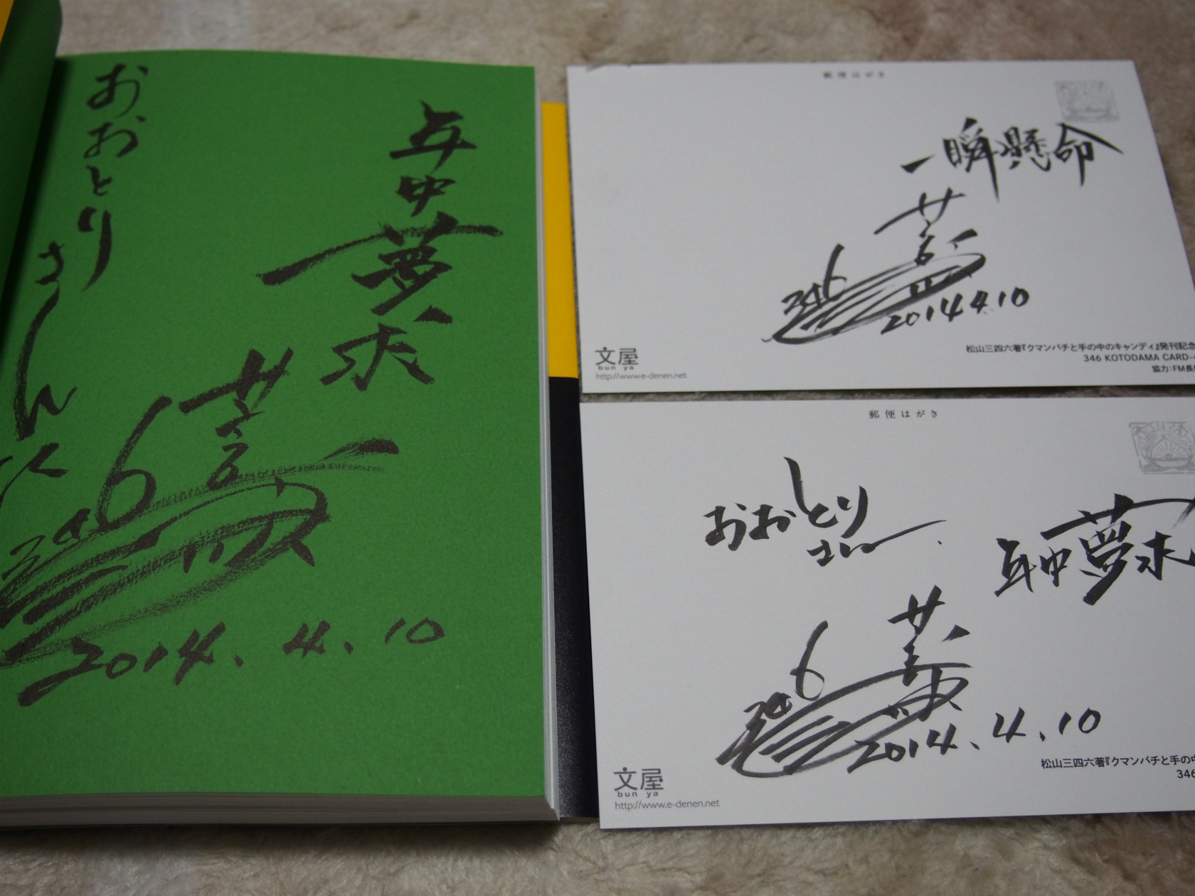 イベント開始前だと言うのに、本にサインをしてくれ、特典のポストカードがあることを知らなかった私に教えてくれ、ポストカードにもサインをしていただきました。