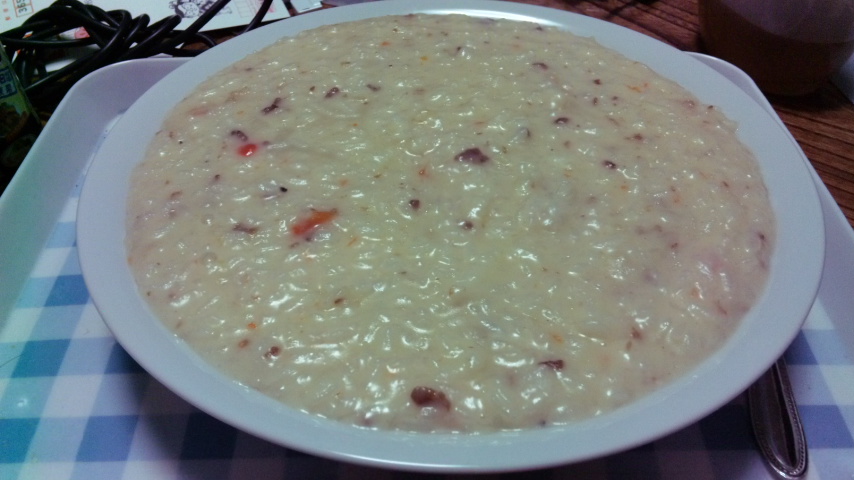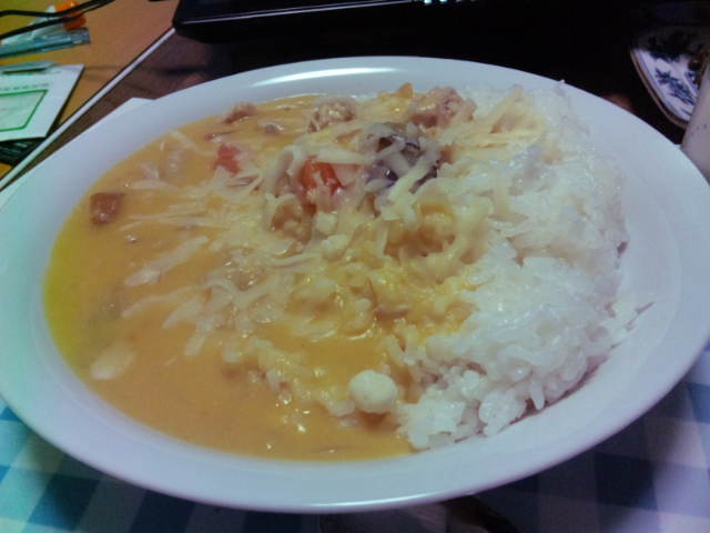 クリームシチューと餅のリゾット。