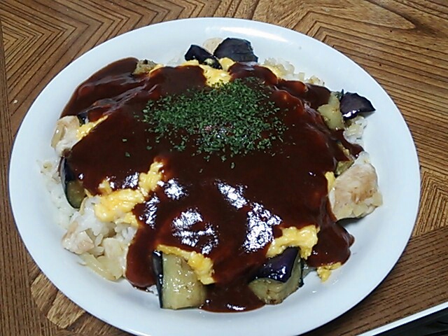 オムライスに揚げ茄子ちょーうめー!(何