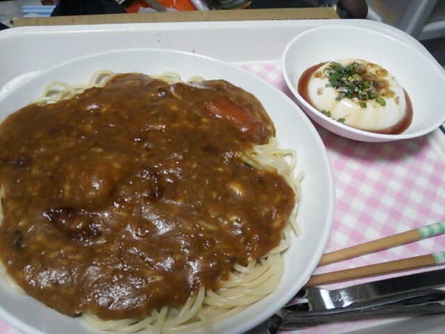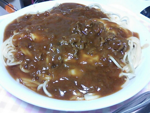 スパゲッティにハヤシソースをかけたの~、美味しいの~(*´ω`*)