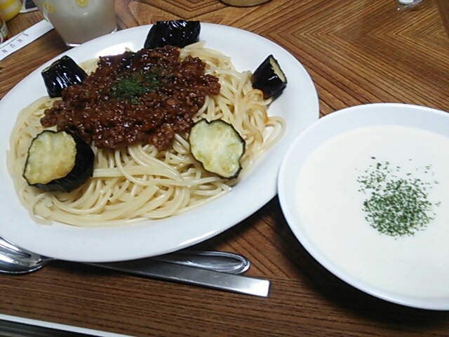 スープはおまけです。買ってきたクリームスープにドライパセリかけただけ。