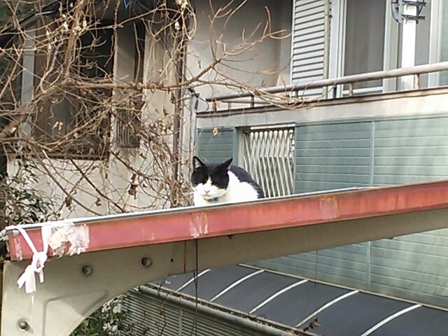 帰ってきたら家の近くでにゃんこが日向ぼっこしてました(笑)