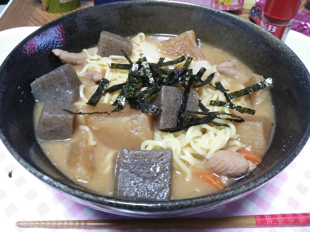 もつ煮に餅とラーメンを入れただけ!