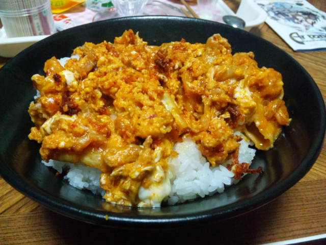 豚キムチをチーズと卵でとじた丼です。
