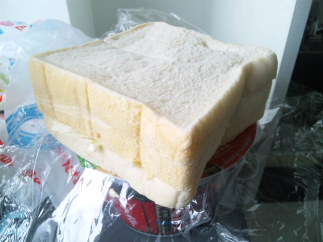 ツナマヨとキャベツの千切りを挟んだサンドイッチ。