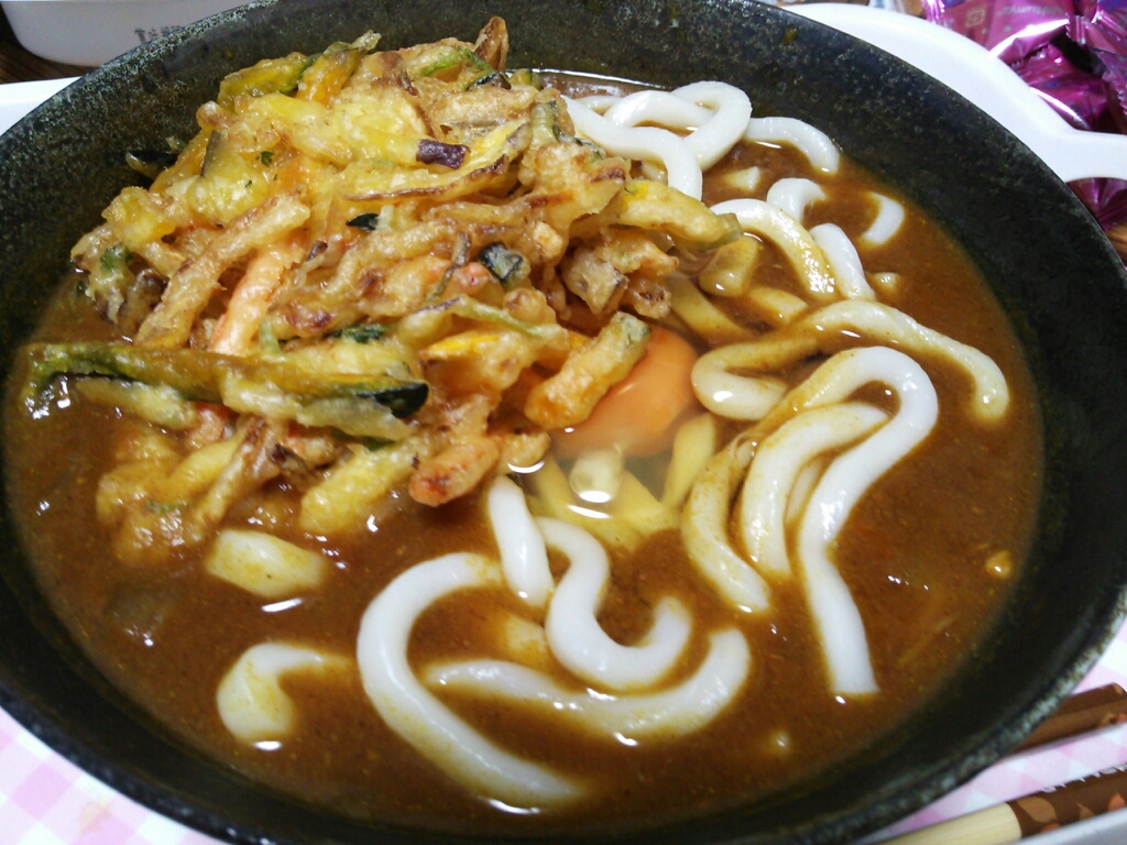 カレーうどんにかき揚げ載せたの初めてだな~(笑)