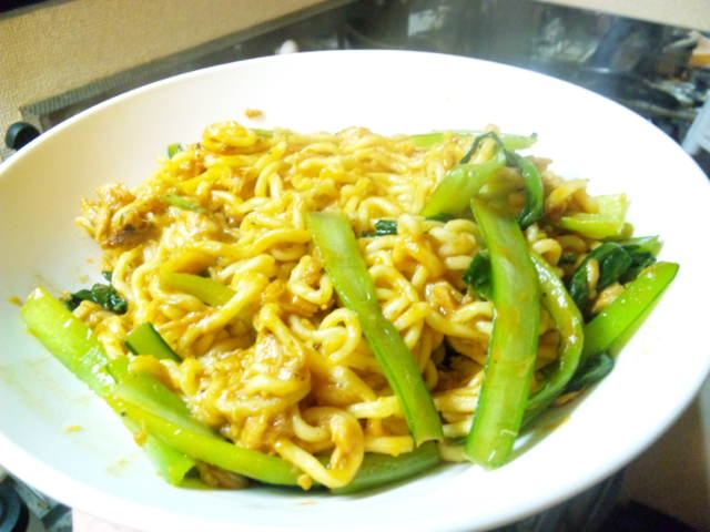 ツナと小松菜で普通の焼きそばを作ろうと思ってたんです。